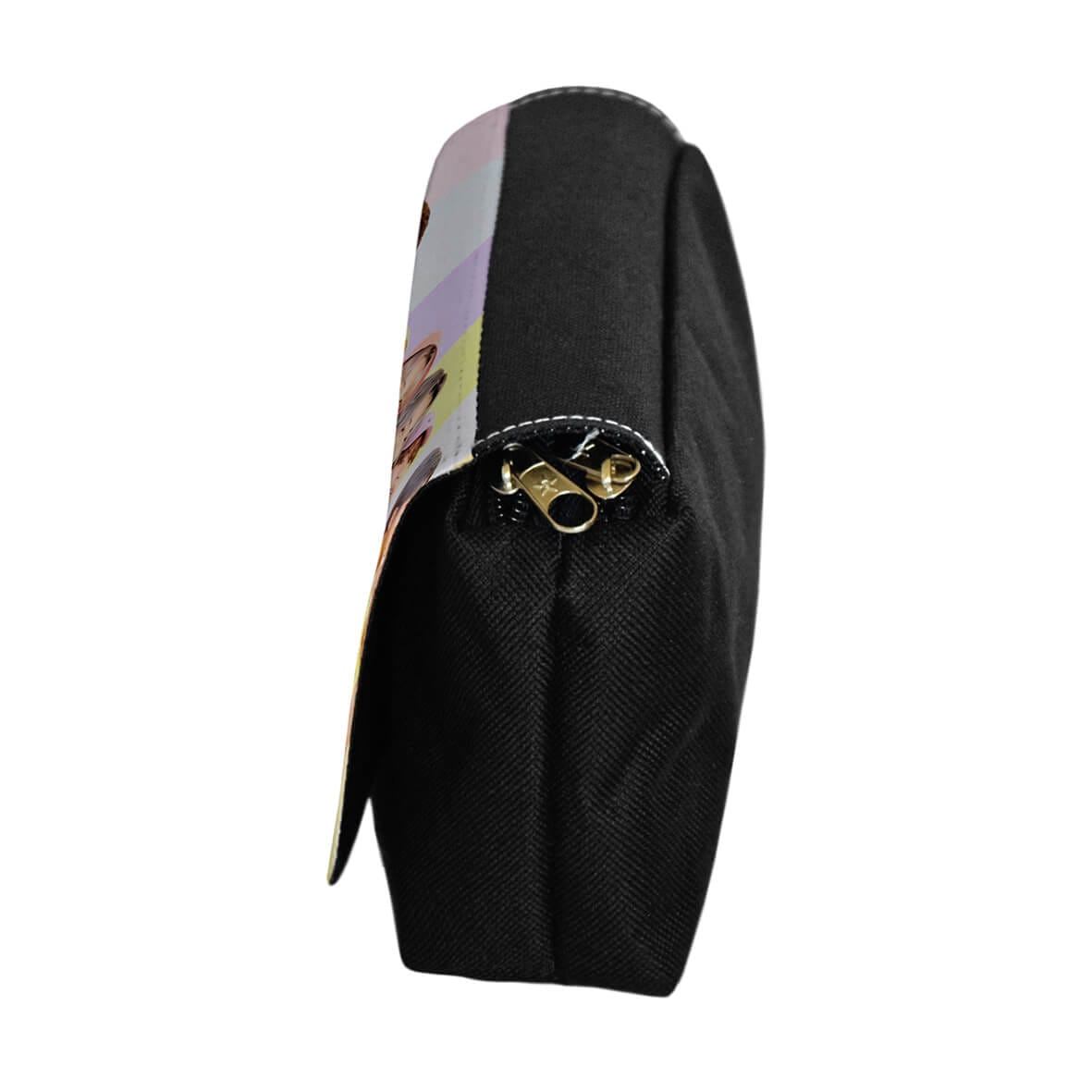 قسمت رویه جامدادی از جنس پارچه میباشد که کیفیت چاپ و وضوح تصویر بالایی دارد. بدنه جامدادی از جنس برزنت مشکی هست. همانطور که در تصاویر پیداست، رویه جامدادی به صورت چسبی باز و بسته می شود و درون آن دو قسمت زیپ دار مجزا برای قرار دادن لوازم قرار داده شده.