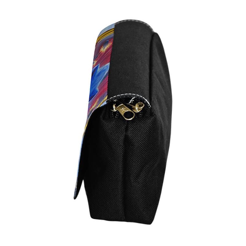 قسمت رویه جامدادی از جنس پارچه میباشد که کیفیت چاپ و وضوح تصویر بالایی دارد. بدنه جامدادی از جنس برزنت مشکی هست. همانطور که در تصاویر پیداست، رویه جامدادی به صورت چسبی باز و بسته می شود و درون آن دو قسمت زیپ دار مجزا برای قرار دادن لوازم قرار داده شده.